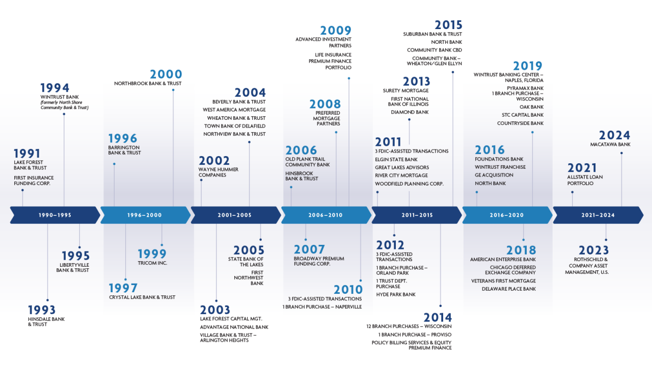 In 1991, Wintrust’s founders set up shop in a northern Chicago suburb with a simple goal: to provide an alternative to the big banks. Now, more than 30 years and 200+ locations later, we’ve stayed true to that original mission.