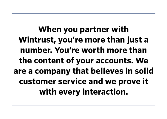 Wintrust is a financial services company based in Rosemont, Illinois. Through our family of more than 175 community bank locations, and related companies and divisions, we offer: